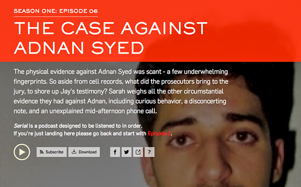 Koenig, Sarah. “SEASON ONE: EPISODE 06 The Case Against Adnan Syed”. Serial. 2014. Retrieved from https://serialpodcast.org/season-one/6/the-case-against-adnan-syed